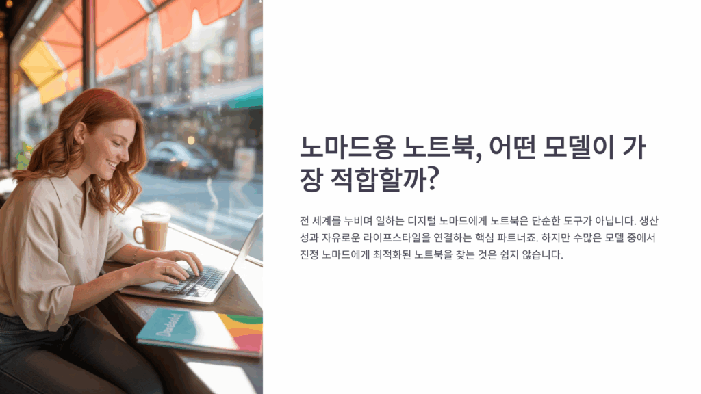 디지털 노마드 생활을 꿈꾸시나요? 카페에서, 해변에서, 산속 캠핑장에서 일하는 자유로운 삶을 위해서는 믿을 수 있는 노트북이 필수예요. 하지만 수많은 모델 중에서 정말 노마드 라이프에 적합한 노트북을 찾기란 쉽지 않죠. 오늘은 2025년 최신 정보를 바탕으로 노마드용 노트북 선택의 모든 것을 알려드릴게요! 😊