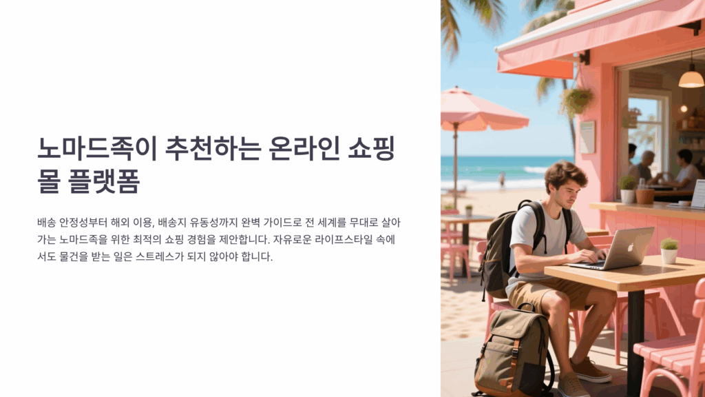 노마드족에게 온라인 쇼핑은 필수적이지만 동시에 큰 도전이기도 해요. 끊임없이 이동하는 라이프스타일 속에서 안정적이고 신뢰할 수 있는 쇼핑 플랫폼을 찾는 것은 정말 중요한 일이에요. 전 세계 어디서든 접근 가능하고, 배송지 변경이 자유로우며, 모바일 환경에 최적화된 플랫폼들이 디지털 노마드들의 필수 도구가 되고 있어요.