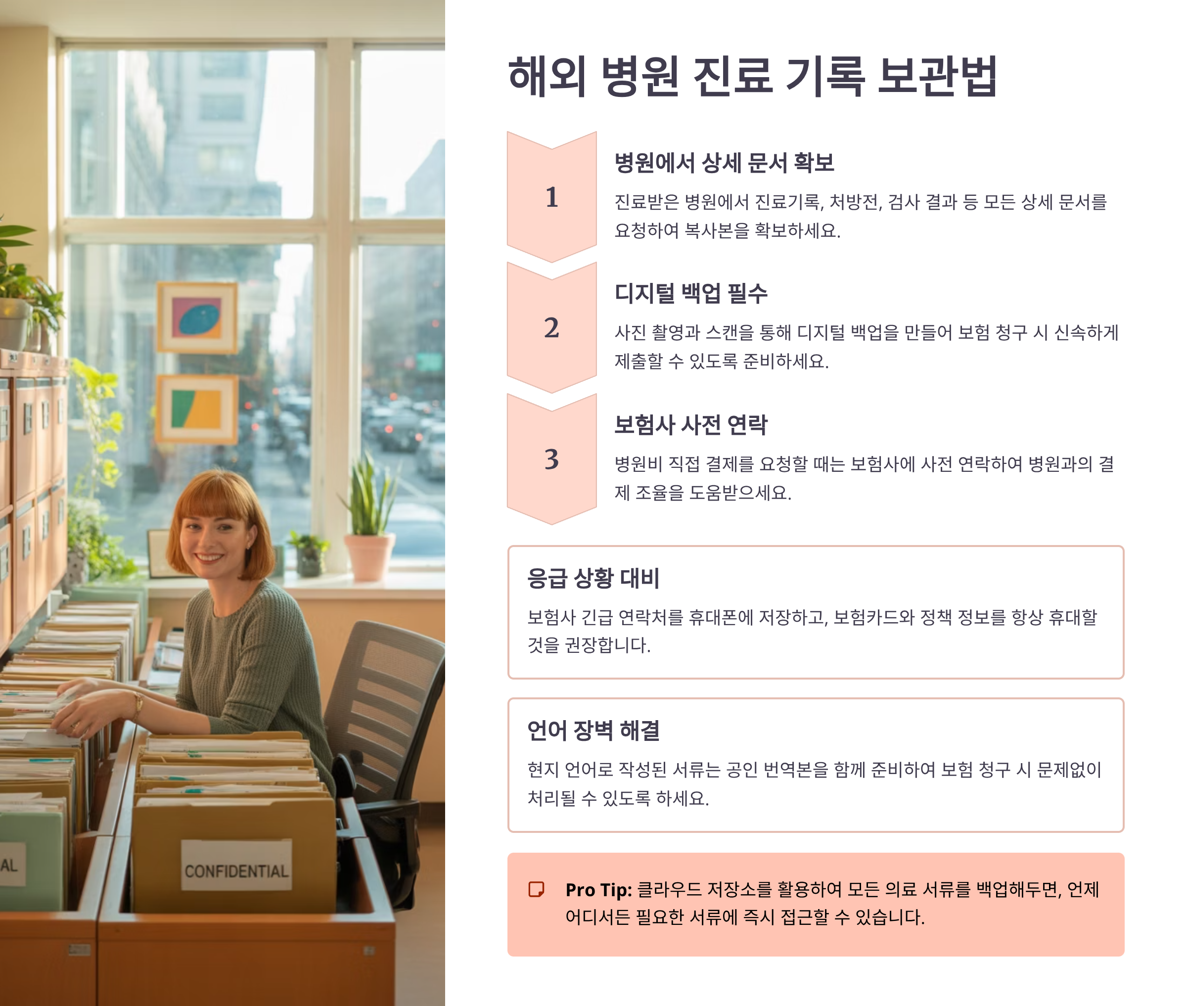 해외에서 병원을 방문할 때는 국내와 달리 모든 기록을 본인이 직접 챙겨야 해요. 전자 의무 기록 시스템이 없는 나라도 많고, 있더라도 나중에 접근하기 어려운 경우가 대부분이에요. 제가 20개국 이상에서 병원을 이용하면서 터득한 완벽한 진료 기록 보관 노하우를 알려드릴게요! 📝