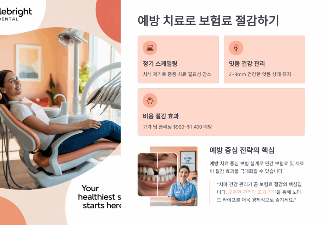 예방이 최고의 치료라는 말, 치과에서 특히 맞는 말이에요. 정기적인 스케일링과 검진으로 큰 치료를 피할 수 있고, 이는 곧 보험료 절감으로 이어져요. 많은 보험사들이 예방 치료를 받는 고객에게 보험료 할인 혜택을 제공한답니다!