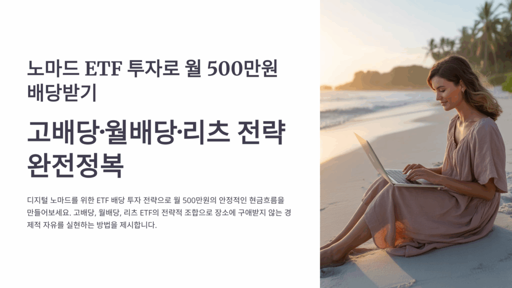 노마드 라이프를 꿈꾸며 월 500만원 배당금을 받고 싶으신가요? ETF 투자로 충분히 가능한 목표예요! 체계적인 포트폴리오 구성과 전략적 접근으로 안정적인 월 배당 수익을 만들어가는 방법을 자세히 알려드릴게요. 💰