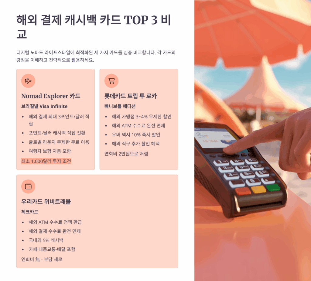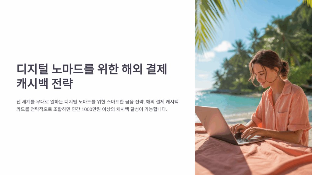 디지털 노마드로 살아간다는 건 자유롭게 세계를 여행하면서 일하는 멋진 라이프스타일이에요. 하지만 해외에서 생활하다 보면 카드 수수료와 환전 비용이 만만치 않게 나가죠. 그런데 카드만 잘 선택하고 전략적으로 사용하면 연간 1000만원 이상의 캐시백을 받을 수 있다는 사실, 알고 계셨나요? 2025년 기준으로 많은 카드사들이 디지털 노마드를 위한 특별 혜택을 제공하고 있어요.