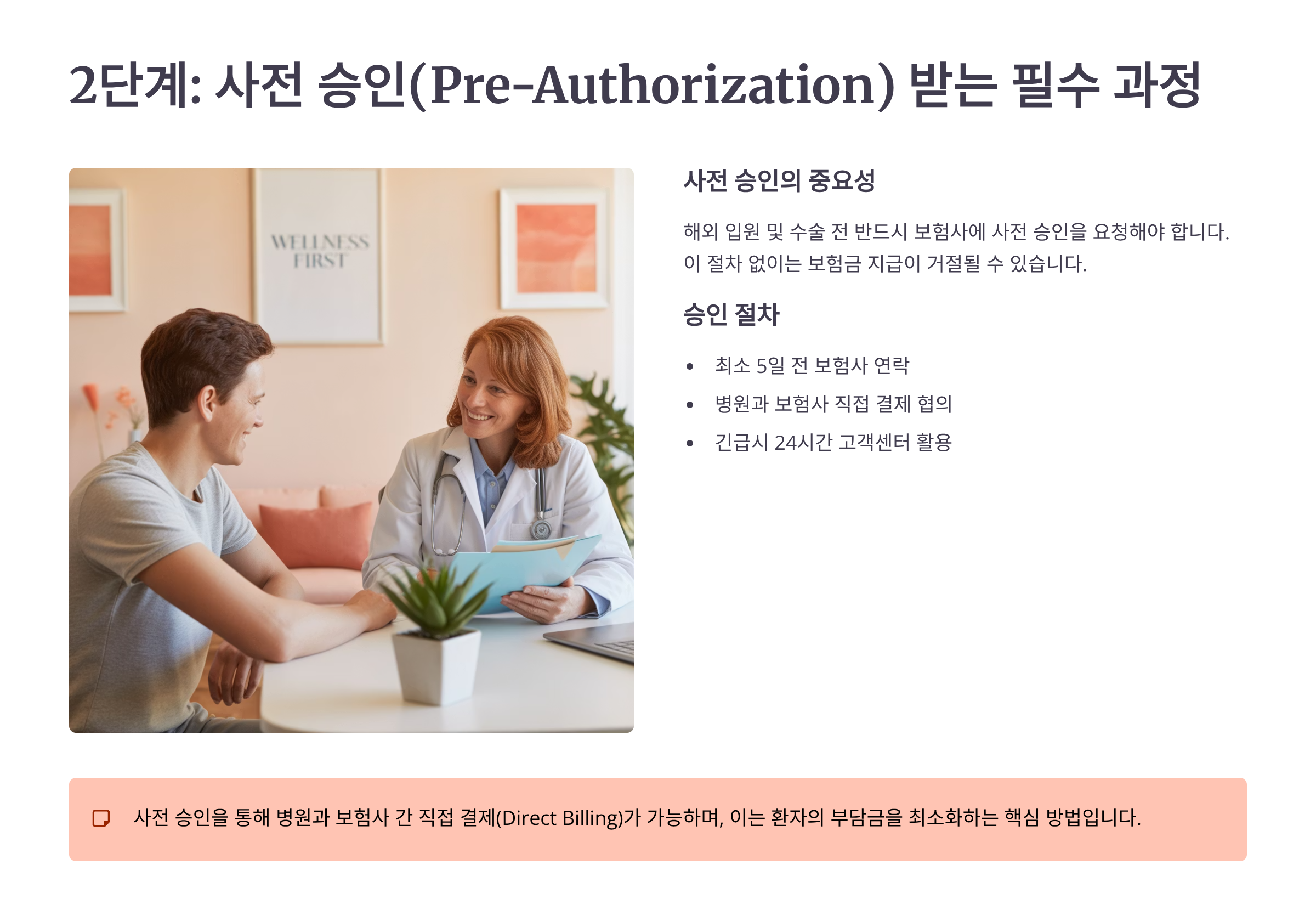 의사 소견서는 사전 승인의 핵심 서류예요. 수술의 의학적 필요성, 긴급성, 대체 치료법이 없는 이유 등을 상세히 기재해야 해요. 가능하면 의사가 직접 작성한 영문 소견서를 받는 것이 좋고, 한국어 번역본도 함께 준비하면 보험사 심사가 빨라져요. 의사 서명과 병원 직인이 반드시 포함되어야 한다는 점도 잊지 마세요!