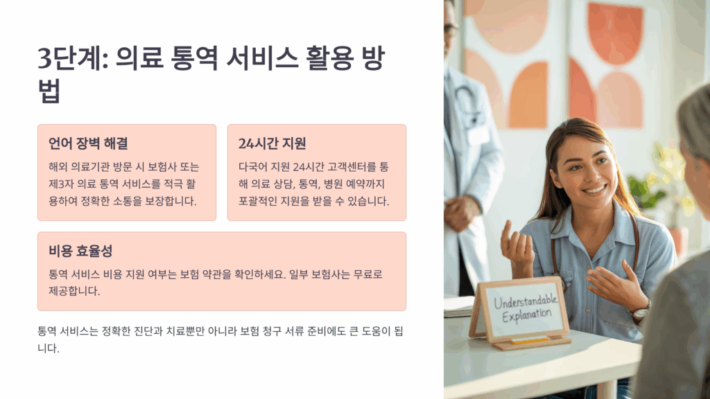 의료 통역 비용도 보험 청구가 가능한 경우가 있어요. 특히 수술이나 입원과 직접 관련된 통역 서비스는 의료비의 일부로 인정받을 수 있어요. 통역사 영수증과 서비스 내용을 상세히 기록한 문서를 보관하세요. 일부 여행자보험은 통역 서비스를 별도로 보장하는 특약이 있으니 약관을 확인해보세요.