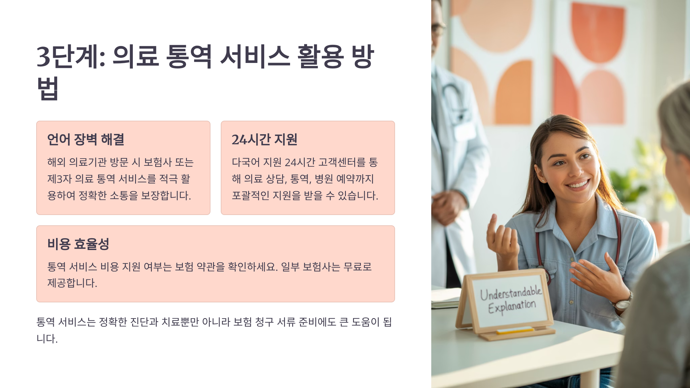해외에서 수술을 받을 때 가장 큰 어려움 중 하나가 바로 언어 장벽이에요. 의학 용어는 일상 회화와 달라서 영어를 잘하는 사람도 어려움을 겪을 수 있답니다. 의료 통역 서비스는 단순한 번역을 넘어 환자의 권익을 보호하고 정확한 의사소통을 돕는 중요한 역할을 해요. 특히 3000만원이 넘는 고액 수술의 경우, 작은 오해도 큰 문제가 될 수 있어요.