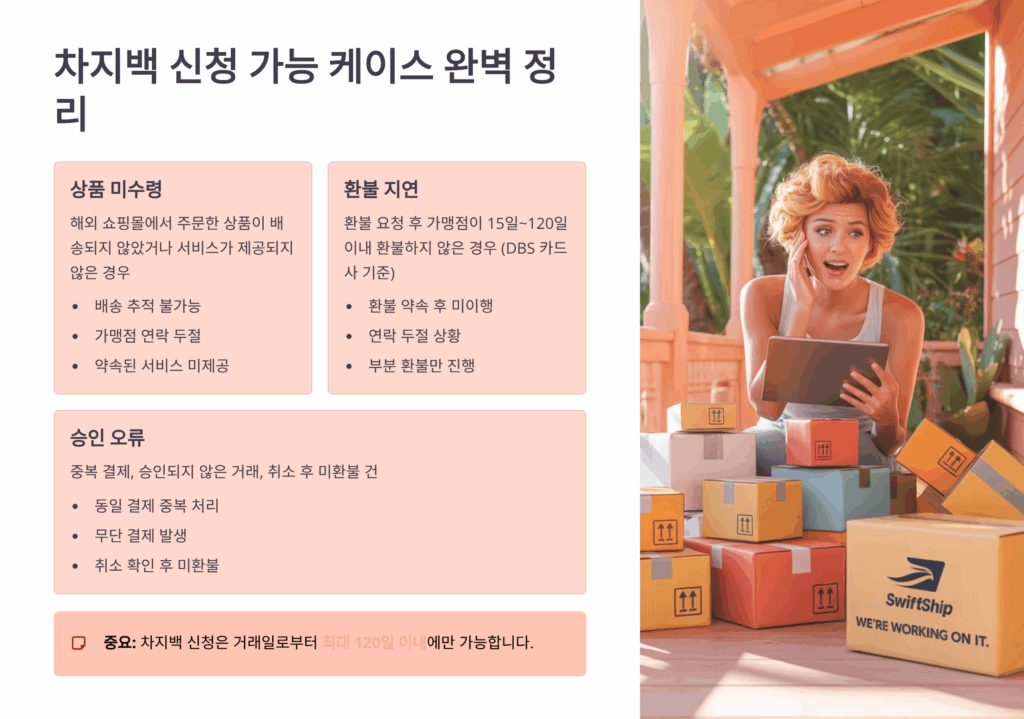 차지백은 모든 경우에 신청할 수 있는 것은 아니에요. 국제 카드사들은 명확한 기준을 가지고 있으며, 이 기준에 부합해야만 차지백 승인을 받을 수 있답니다. 가장 흔한 차지백 신청 사유는 상품 미배송, 서비스 미제공, 상품 하자, 이중 결제, 무단 결제 등이 있어요. 특히 해외 온라인 쇼핑몰에서 상품을 주문했는데 배송이 되지 않거나, 주문한 것과 전혀 다른 상품이 왔을 때 차지백을 신청할 수 있답니다.